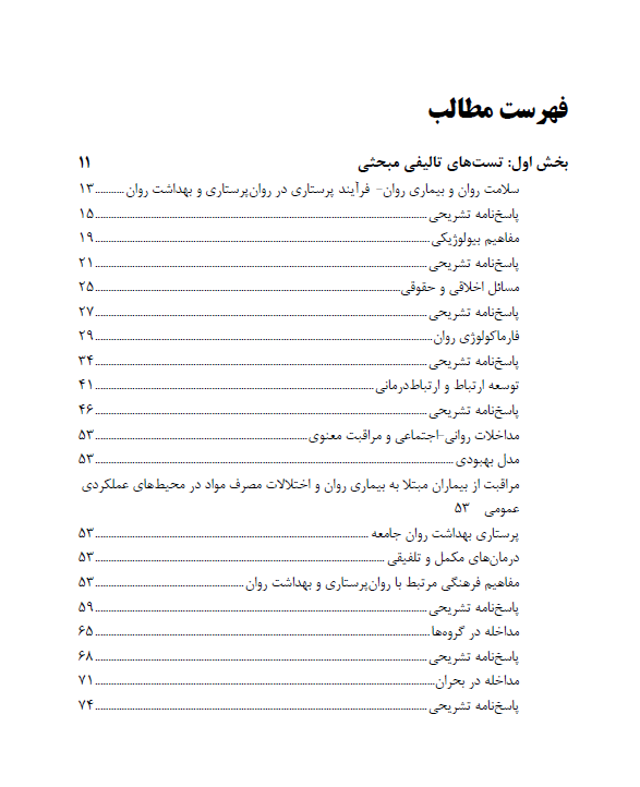 - تست های تالیفی مبحثی: بیش از ۴۵۰ تست تالیفی توسط مدرسان و دانشجوی روان پرستاری، طبق فصل بندی منابع اصلی روان پرستاری طراحی و تحلیل شده است.